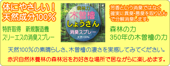 檜の芳香もしながら、檜の芳香が無くなると共に 異臭・悪臭を取り除いていきます。